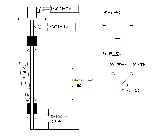 連桿浮球液位開關(guān)多點位控制示意及接線圖